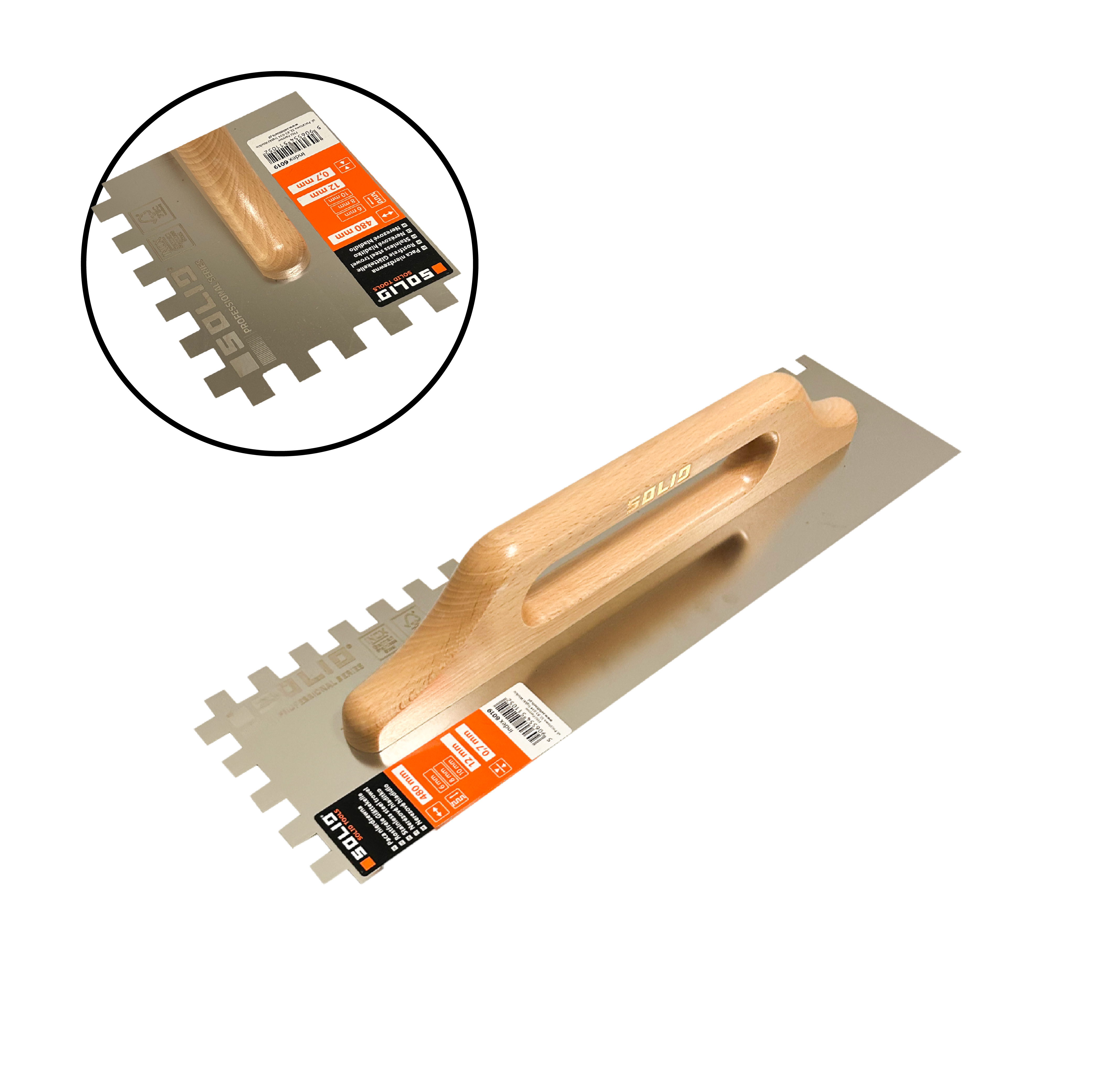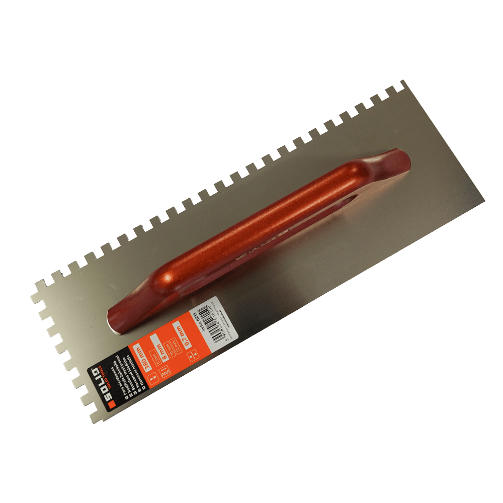 Rostfreie Zahnkelle, Zahntraufel rechteck gezahnt, Holzgriff 130 * 380 mm 0,7mm
